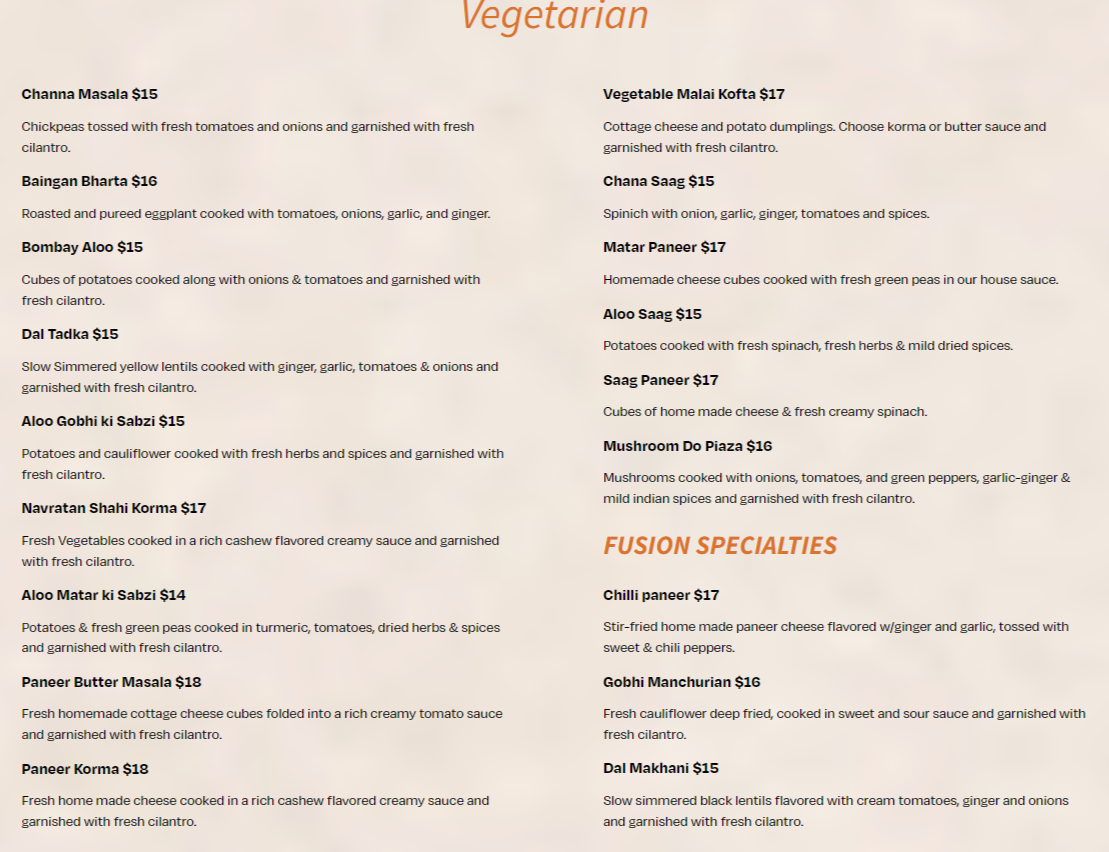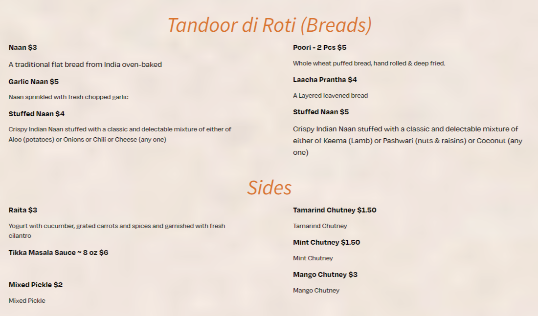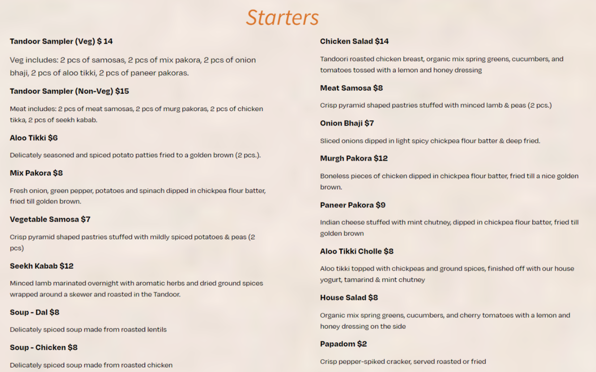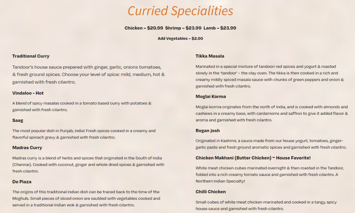 Introducing the Menu: Tandoor Fine Indian Cuisine